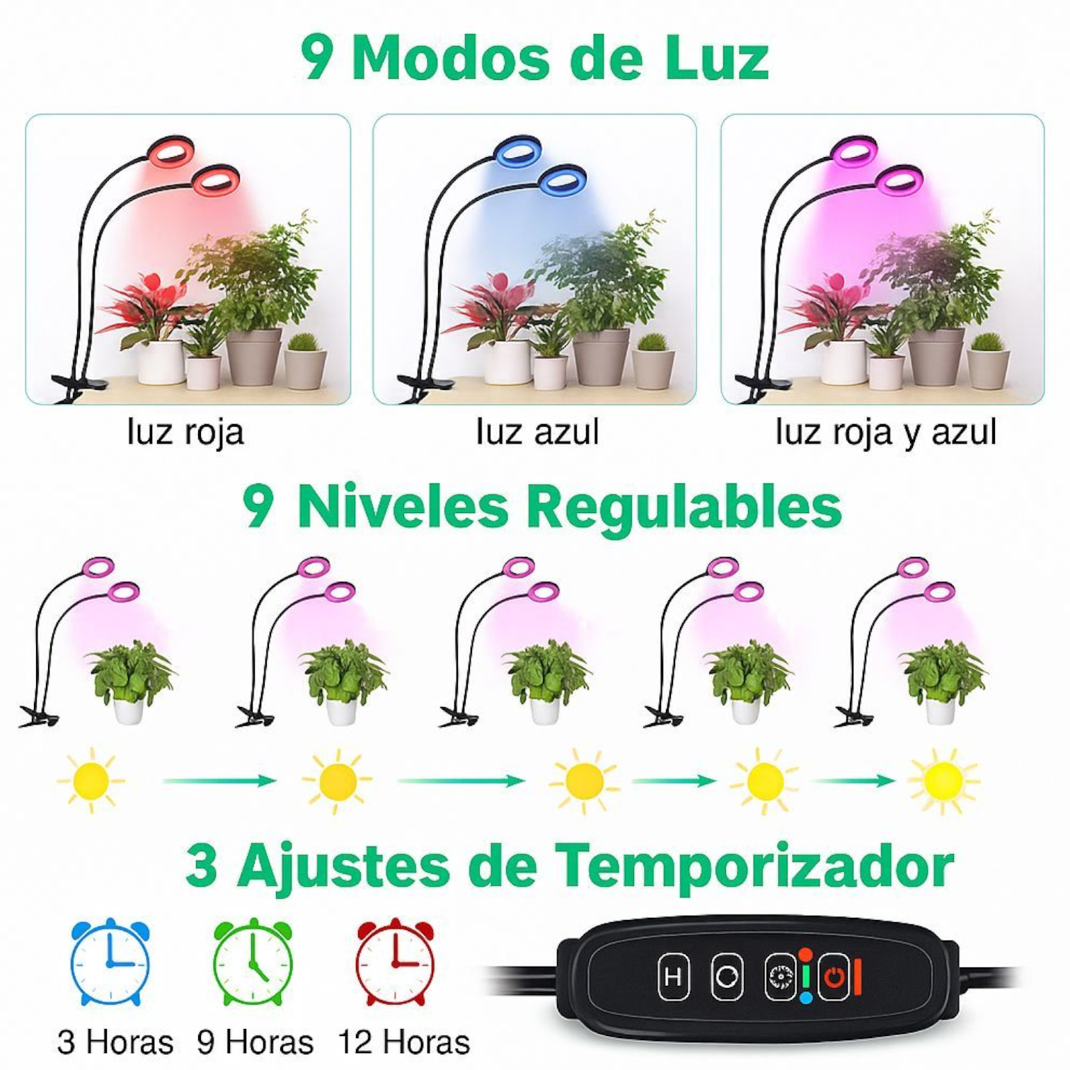 1.Luz de Espectro Completo: Proporciona la luz necesaria para el crecimiento saludable de las plantas en todas las etapas, cuenta con un clip fuerte y estable, fácil de montar y desmontar, y alimentado por USB con interruptores en el mismo cable para un uso flexible y sin limitaciones.