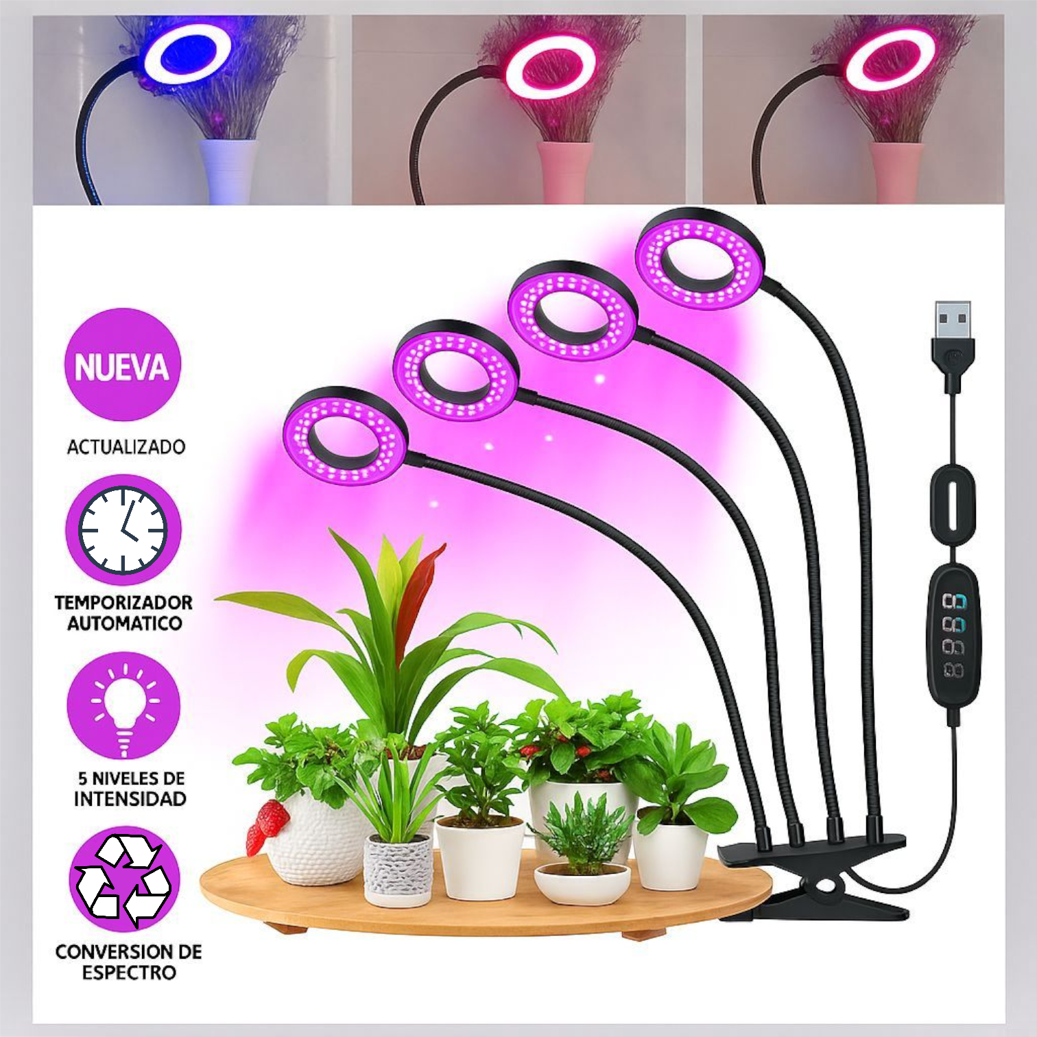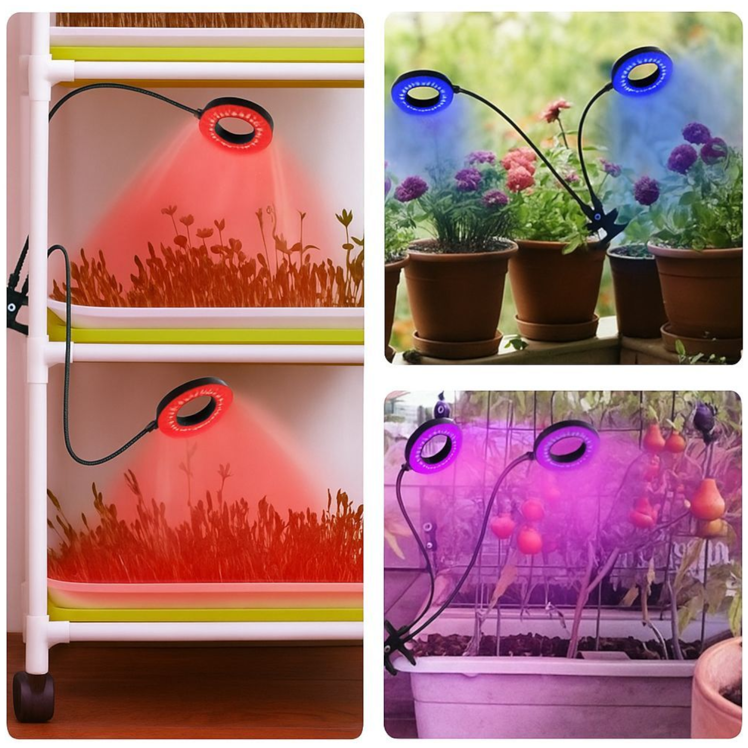 3.Diseño flexible y color Personalizable: 4 cuellos flexibles de 360 grados que se pueden doblar y ajustar fácilmente en altura para proporcionar el mejor ángulo de iluminación y 3 modos de color (luz roja + azul, luz roja y azul) para adaptarse a las necesidades específicas de tus plantas.